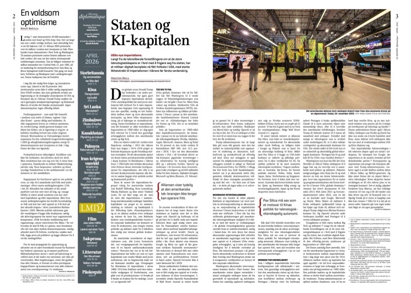 Staten og KI-kapitalen, Storbritannias nye venstreside, Kinas vinnere og tapere, marxisme i Sri Lanka, tilbake til Kariba, Kasakhstans monobyer, Palmyras rekonstruerte framtid, Iran-krigens vanvidd: Israels krig, «Stille, vi skyter», myten om de frigjørende bombene, reglene som holder verden sammen, nølende houthier, Libanon i ilden igjen, Balkan-fantasier, motstandens nye former, Den lille prinsen, Jesu siste måltid, Løvene ved elven Tigris.